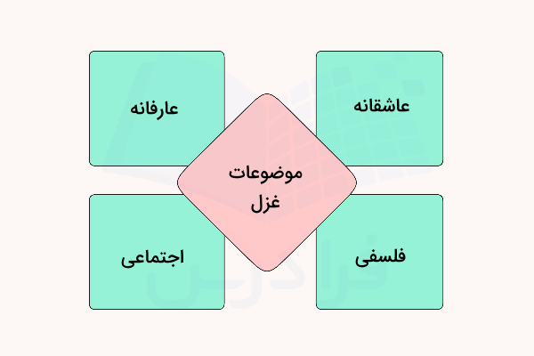 یاد میگیرید غزل دارای چه موضوعاتی است.